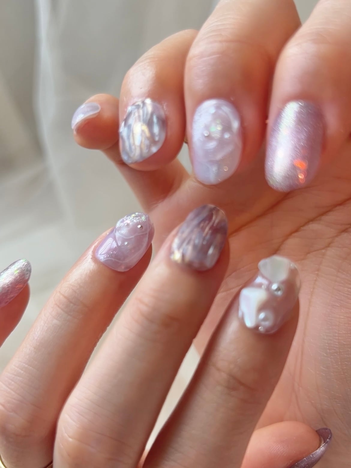 ニュアンスアートですので、使用しているパーツの大きさやジェルのカラーに多少差が出ることがございます。